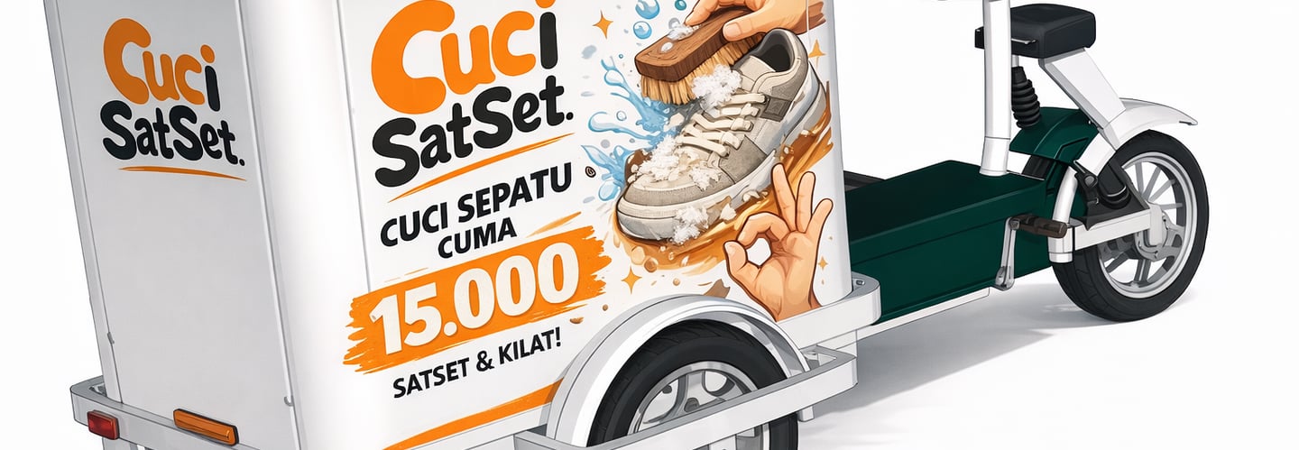 Layanan cuci sepatu dengan gerobak listrik yang datang ke lokasi kamu.